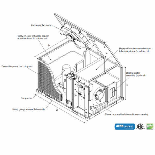 Electric heat kit available as a field-installed option:5/8/10/15/20kW.