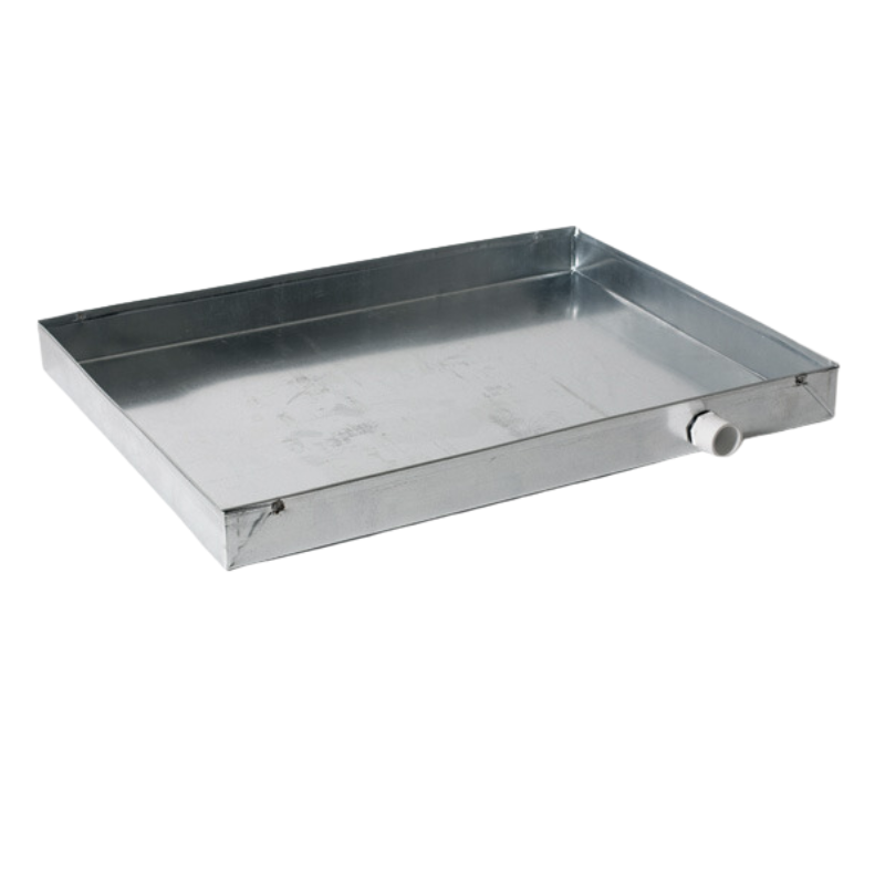 Drain pans are used to collect condensate from evaporator coils in case of overflow. Each drain pan features quality, one-piece construction of 26-gauge galvanized steel that will not rust.