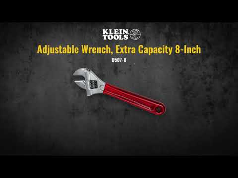 The Klein Tools adjustable wrench is designed with smaller size but the ability to handle heavy-duty jobs. This wrench is manufactured from heat-treated alloy steel for strength and has a high polish chrome finish. It also features a lightweight 8-inch design with an extra-capacity jaw.