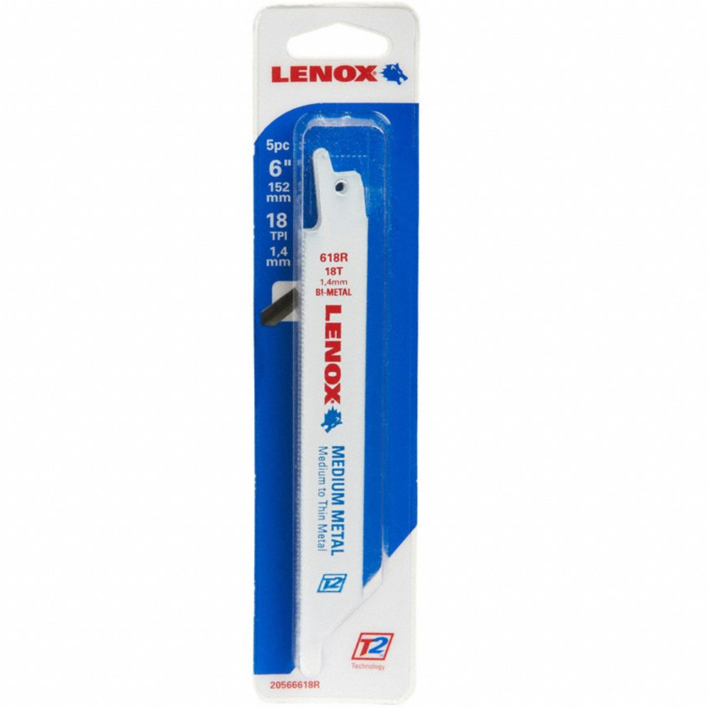 RECIPROCATING SAW BLADE: 18 TEETH PER INCH, 6" BLADE LG, 3/4" HT, 0.035" CUT WD, 5 PK